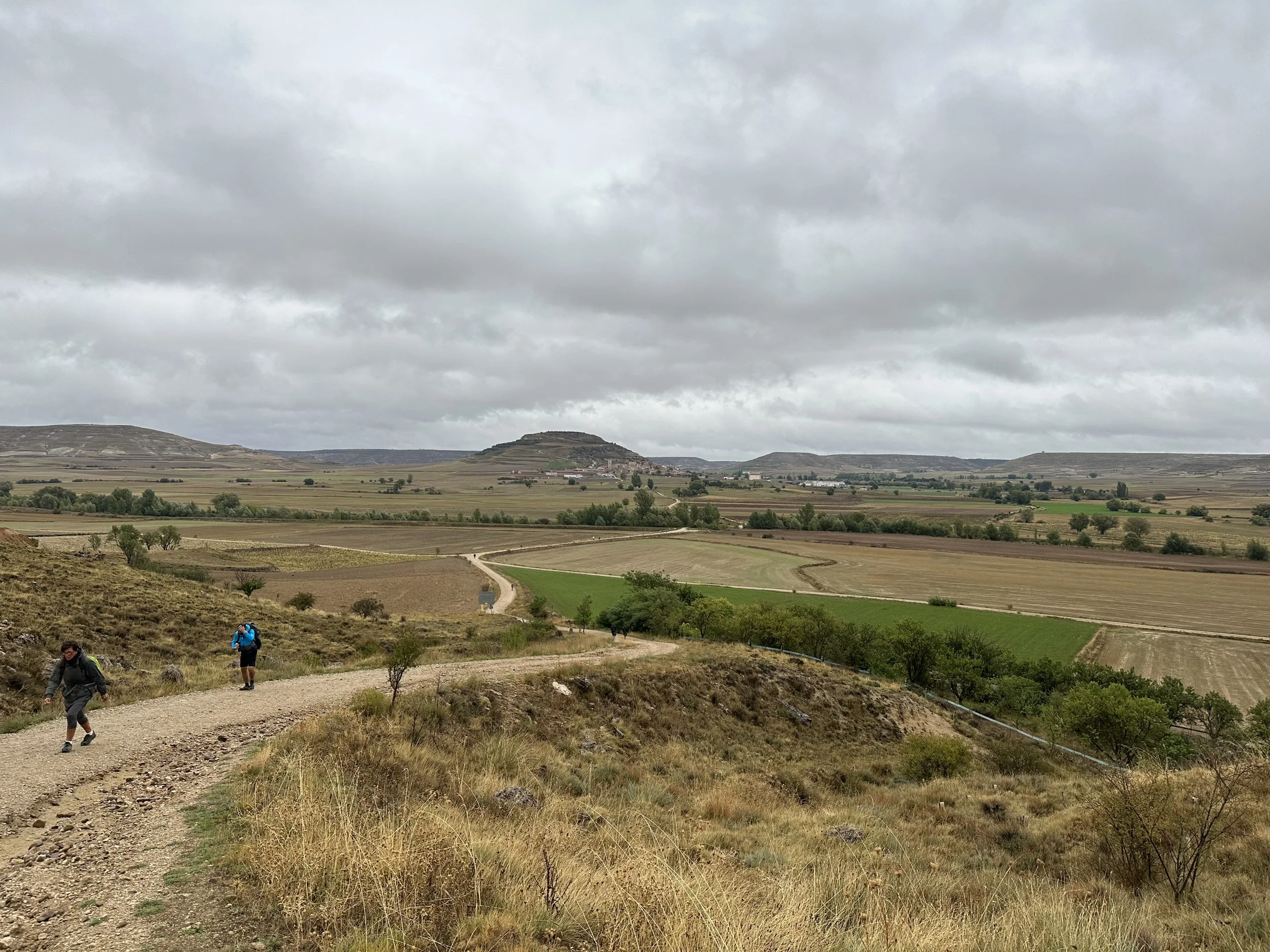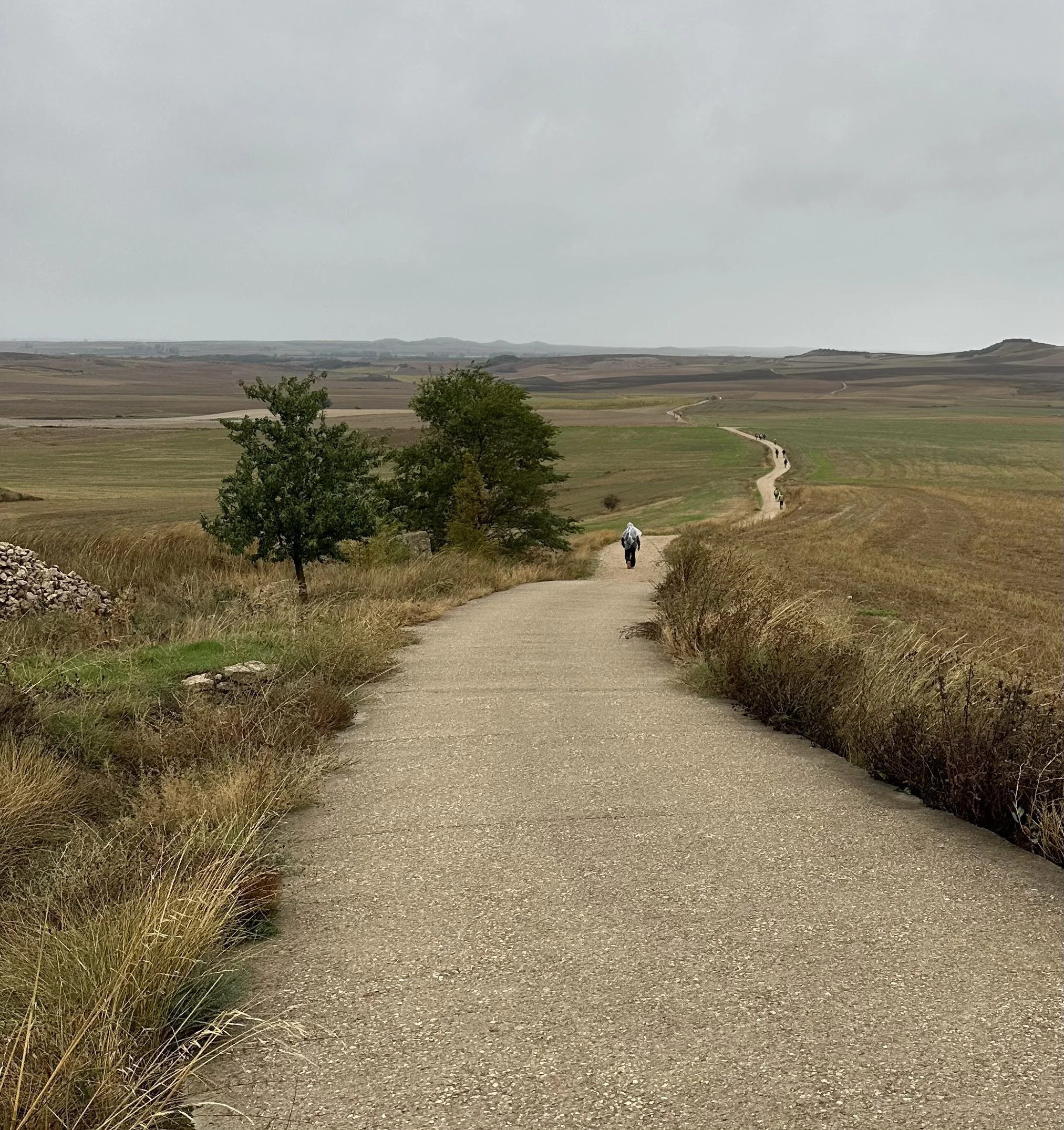 It didn’t help that this day it rained. It really rained! I had shoes that breathed and that were essentially water resistant. But they weren’t waterproof. For two hours a steady downpour enveloped us and there was no escape from the weather in the almost treeless Meseta plain. The path eventually had streams of water running down it and we did the best we could to avoid the little rivers and the gooey mud. I can remember when I shifted from trying to stay dry to simply walking with my head down knowing that I couldn’t get any more wet. I felt resigned to the rain and resigned to my grief.