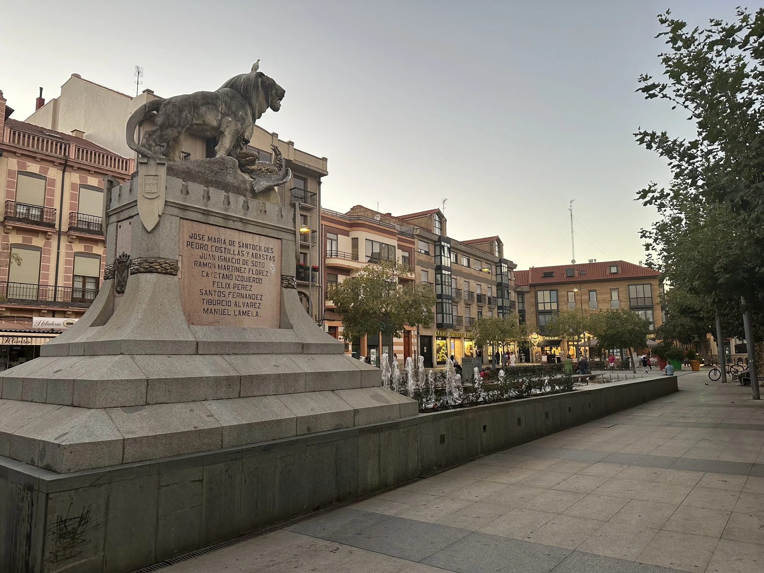 I found my 7-euro room, got my bed ready, took a shower, did my wash, hung my clothes out to dry and then made my way down to the plaza for lunch. There Ramona and another pilgrim had just secured a table and I joined them for a delightful lunch of the traditional Ensalada Mixta with lettuce, tomato, onion and tuna and a tall beer.