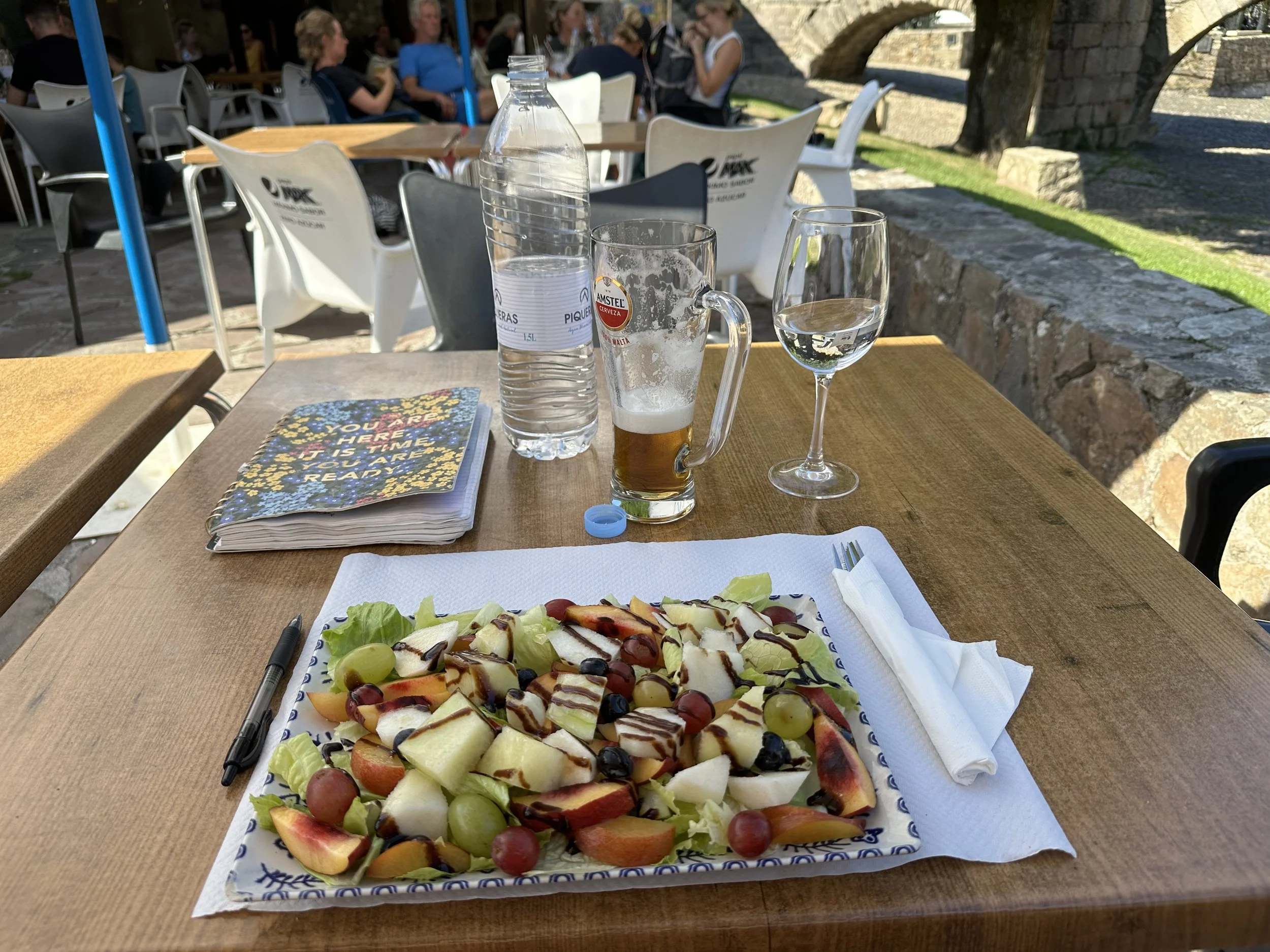 That night in Molinaseca I enjoyed a marvelous fruit salad out on the patio overlooking the stream. Dozens of pilgrims and locals were buzzing with energy and conversation around tables. After a leisurely afternoon and evening, I secured a private room and slept deeply.